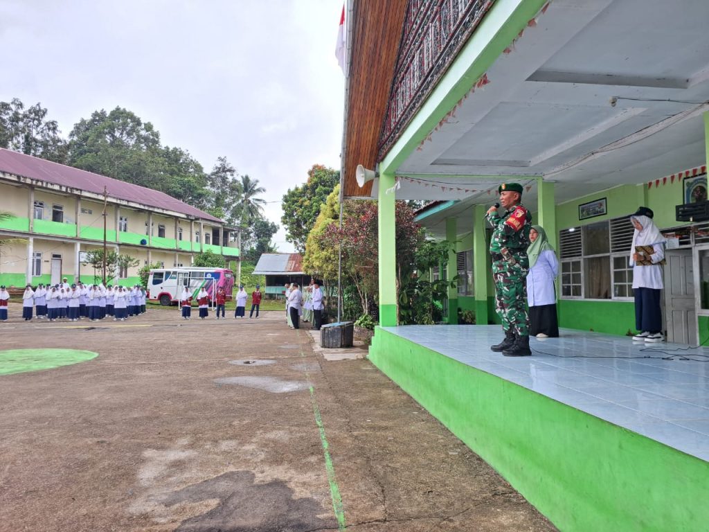 Jadi Pembina Upacara di MTsN 11 Tanah Datar, Ini Pesan Danramil Afrizal